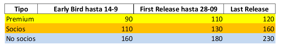 ⭐ Full Experience – 240€ early bird (hasta el 1 de mayo) (No socios desde 260€ después 1 de mayo)| Socios basic: 220€ | Premium: 199€